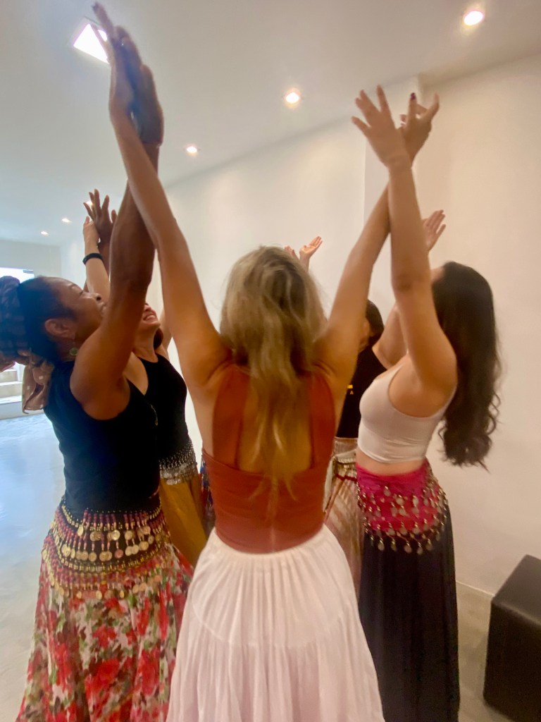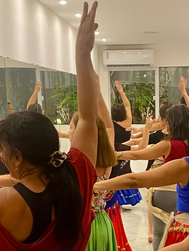 A dança para mim, é um documento vivo que se manifesta no corpo. Como Licenciada em História, compreendo que cada movimento carrega séculos de tradição cultural. Minhas aulas não são apenas sobre passos: são sobre o resgate de uma herança ancestral vivida no presente. Aqui as Danças do Ventre e Ciganas Artísticas são estudadas em sua totalidade: da pesquisa cultural e rítmica à expressão profunda da alma.